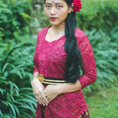 Kamen warna merah cocok dipadukan dengan berbagai jenis kebaya, terutama yang memiliki warna netral atau lembut agar tampilan tetap seimbang dan elegan. Misalnya, kebaya berwarna putih, krem, pastel, atau nude akan menonjolkan warna merah pada kamen tanpa terlihat berlebihan. Untuk tampilan yang lebih berani, kamen merah juga bisa dipadukan dengan kebaya bernuansa emas atau cokelat muda, sehingga menciptakan kesan mewah dan hangat.